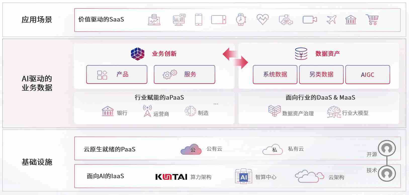数字时代,,围绕企业数字化转型的关键要素,,,z6com尊龙数码开创性的提出数云融合战略和技术体系框架,,,,着力在云原生、、、数字原生、、AI原生和信创产业上架构产品和服务能力,,,,为处在不同数字化转型阶段的快消零售、、、汽车、、金融、、、医疗、、、政企、、、教育、、、运营商等行业客户提供泛在的敏捷IT能力和融合的数据驱动能力,,,,构建跨界融合创新的数字业务场景和新业务模式,,助力企业级客户建立面向未来的核心能力和竞争优势,,全面推动社会的数字化、、、、智能化转型升级。。